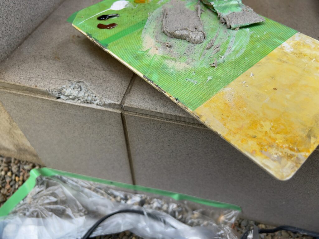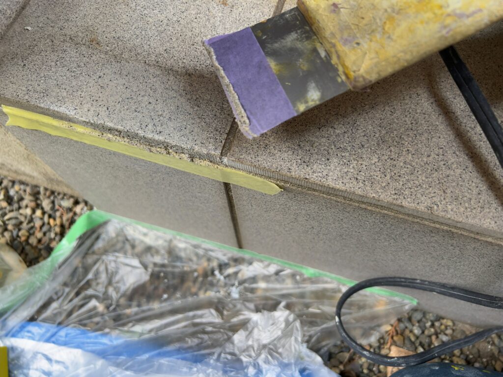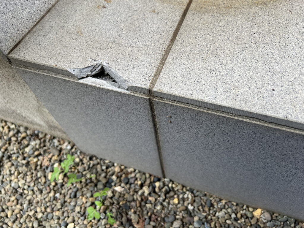 石補修 玄関タイルの割れ補修(茨城県龍ケ崎市) 内容:玄関タイルの割れ補修場所:茨城県龍ケ崎市作業時間の目安:3時間 茨城県龍ケ崎市より玄関タイルの割れ補修のご依頼を頂きました。割れた箇所をリューターで荒した後、骨材入りのエポキシ系樹脂で下地を作り、さらに既存のタイルに合わせて調合した専用のエポキシ樹脂で仕上げました。最後に目地剤を入れて完成です。 リペアは交換・張替え工事より費用と時間を抑えて問題を解決する事が可能です。質問だけでも、お気軽にご相談ください。