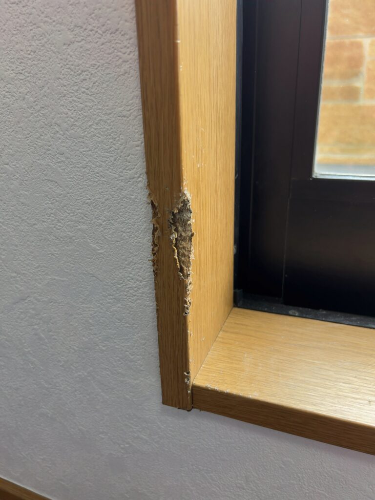 茨城県守谷市より枠の傷補修のご依頼を頂きました。傷の箇所を瞬間接着剤で固めた後、充填材で枠の形を成形→木目描き→クリア吹き付け、で完了です。