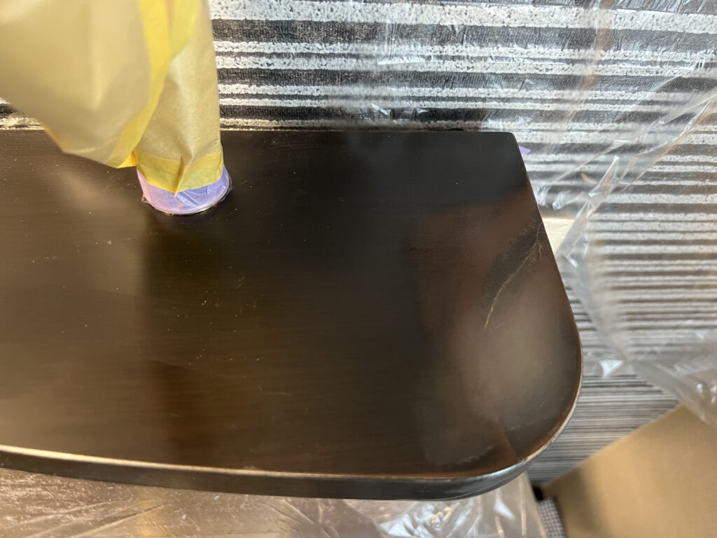 カウンター補修木部補修 カウンターの割れ補修(茨城県土浦市) 内容:カウンターの割れ補修場所:茨城県土浦市作業時間の目安:2時間 茨城県土浦市よりカウンターの割れ補修のご依頼を頂きました。初めに割れて膨らんだ箇所を削り取りUVパテで下地を作りました。その後はサンディングシーラー塗装→ベース色塗装→木目描き→クリア塗装で仕上げました。 リペアは交換・張替え工事より費用と時間を抑えて問題を解決する事が可能です。質問だけでも、お気軽にご相談ください。