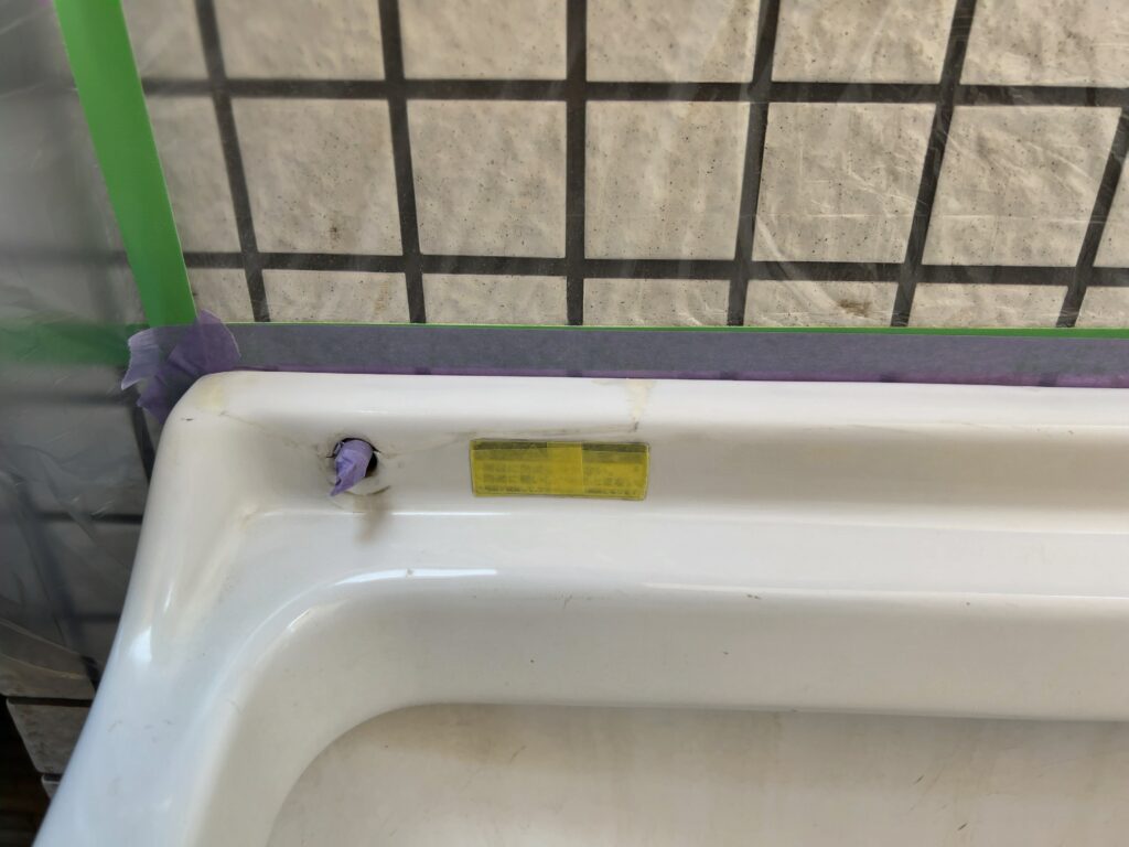 その他外部補修 洗面ボウルの割れ補修(茨城県つくば市) 内容:洗面ボウルの割れ補修場所:茨城県つくば市作業時間の目安:3時間 茨城県つくば市より洗面ボウルの割れ補修の依頼を頂きました。初めに割れたは破片がピッタリ戻るように断面を削った後、エポキシ系樹脂で強力に接着しました。その後は足ずけ→サフェーサー→吹き付け塗装→クリア吹き付け塗装→磨きで完成です。今回は水の影響をさほど受ける箇所ではなかったので部分塗装で対応しました。 リペアは交換・張替え工事より費用と時間を抑えて問題を解決する事が可能です。質問だけでも、お気軽にご相談ください。