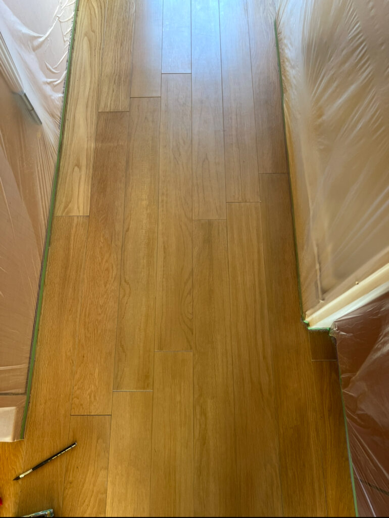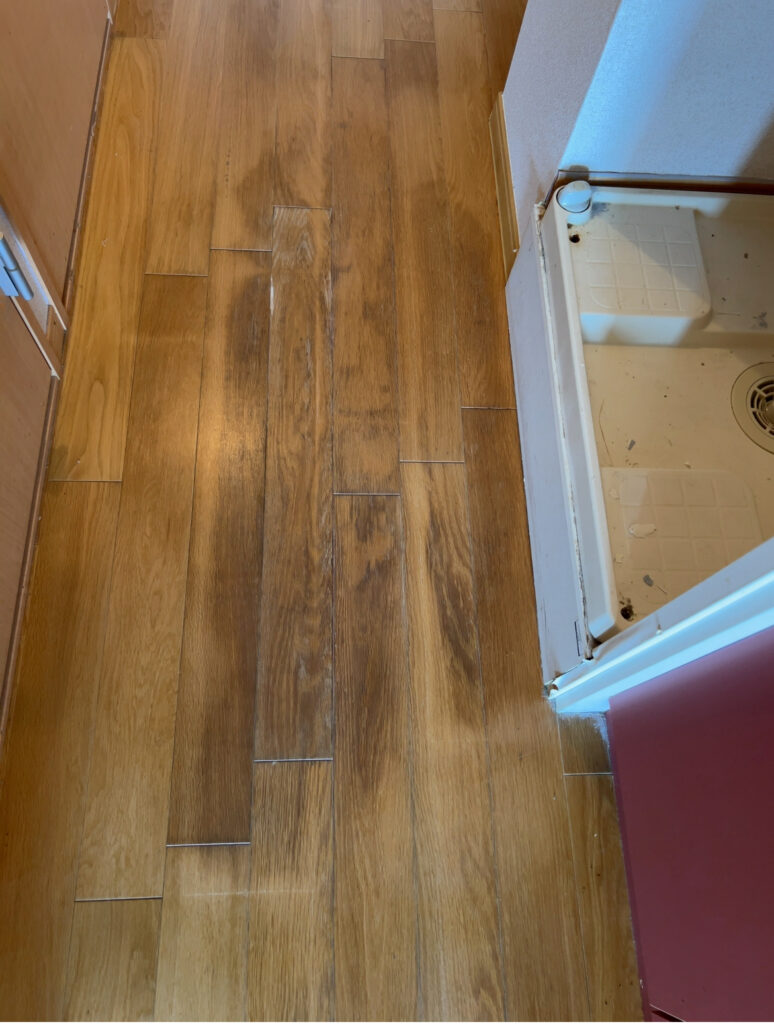 床補修 フローリングの黒ずみ補修(茨城県つくば市) 内容:フローリングの黒ずみ補修場所:茨城県つくば市作業時間の目安:2日間 茨城県つくば市よりフローリングの黒ずみ補修のご依頼を頂きました。最初に黒ずみをなるべく除去した後サンディングシーラーで下地調整をしました。その後はベース色を吹き付け塗装→木目描き→カラークリア吹き付け塗装→クリア吹き付け塗装で完成です。 リペアは交換・張替え工事より費用と時間を抑えて問題を解決する事が可能です。質問だけでも、お気軽にご相談ください。