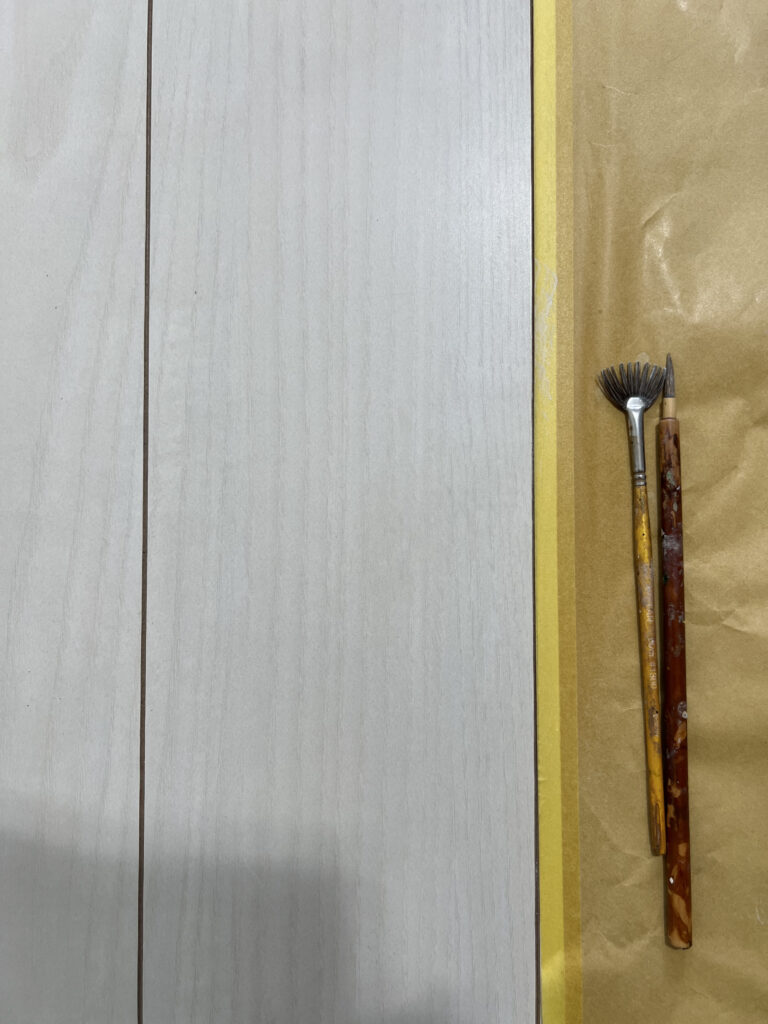 茨城県龍ケ崎市よりフローリングの傷補修のご依頼を頂きました。傷の箇所に充填材を埋めた後、木目を描きクリアを吹き付けて完了です。既存の箇所をなるべく活かすために出来るだけ小さく納めました。